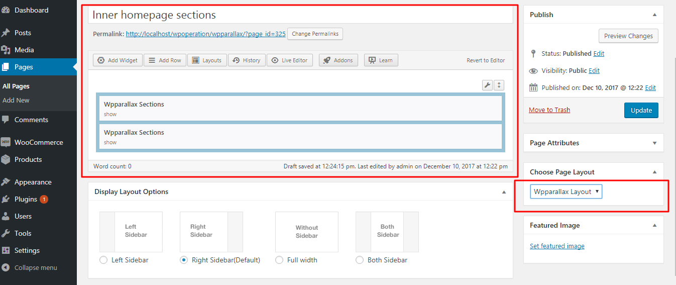 After choosing the layout you can add the homepage section widget(Wpparallax section) to that page with the help of page builder plugin.